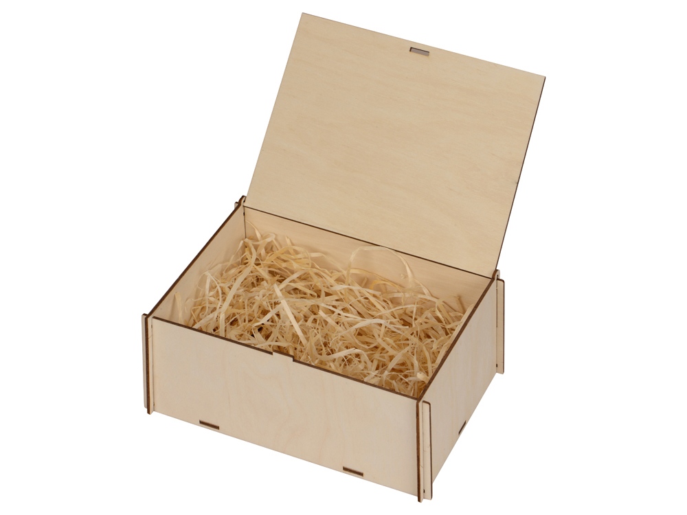 Подарочная коробка из березовой фанеры со стружкой станет идеальной упаковкой для Вашего подарка.