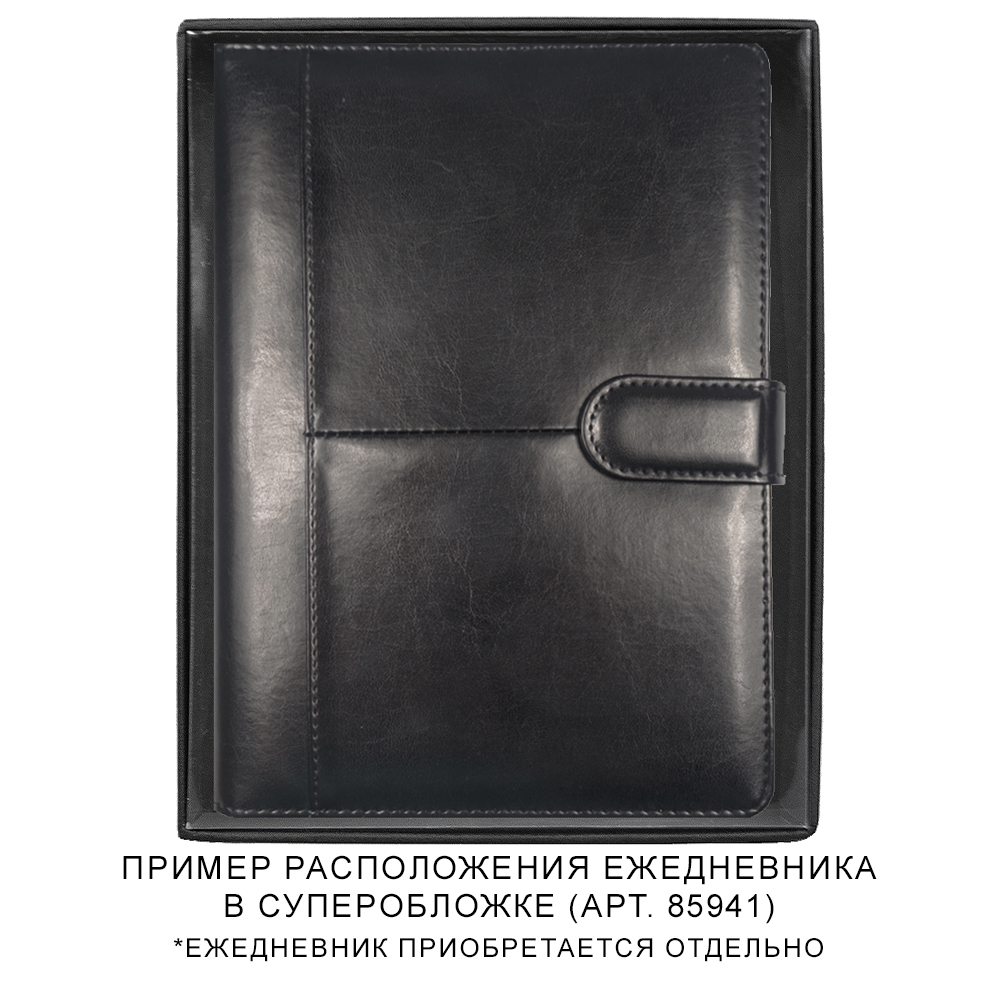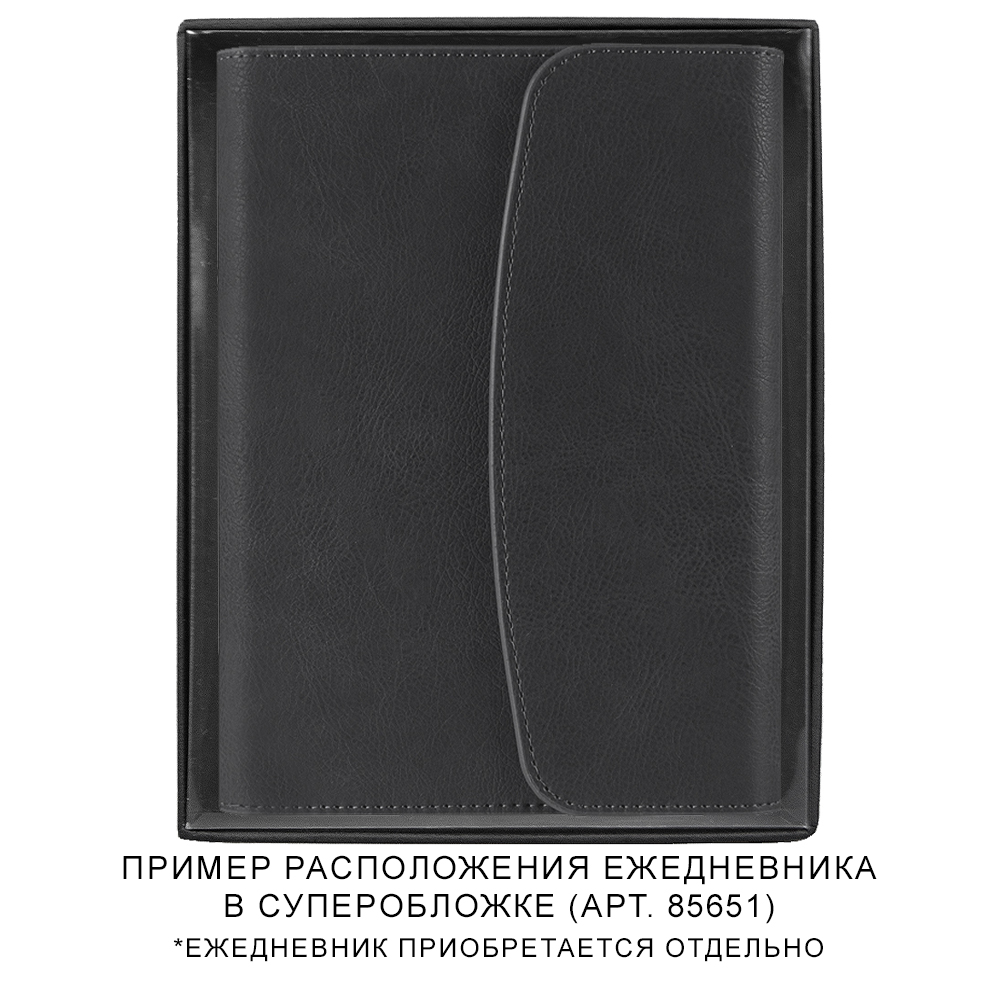 Подарочная коробка черного цвета пластиковой прозрачной крышкой. Подходит для ежедневников в суперобложке длиной до 22,5 см.