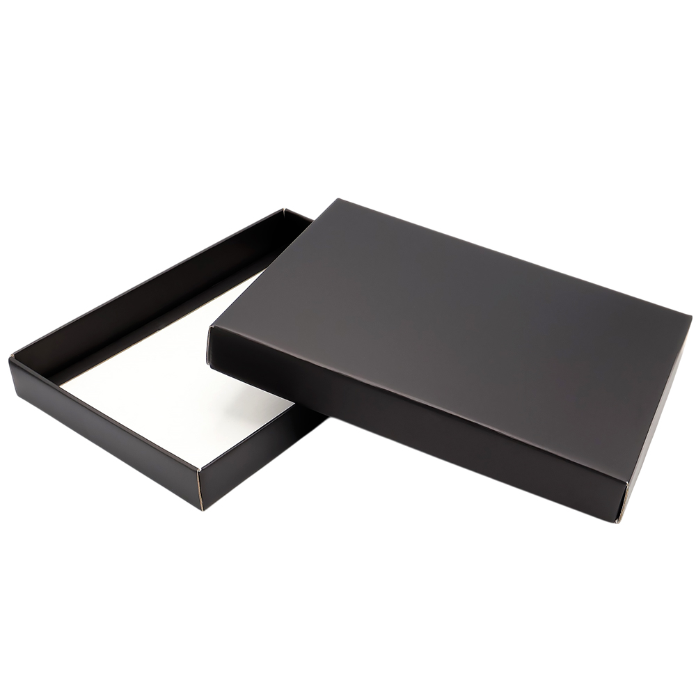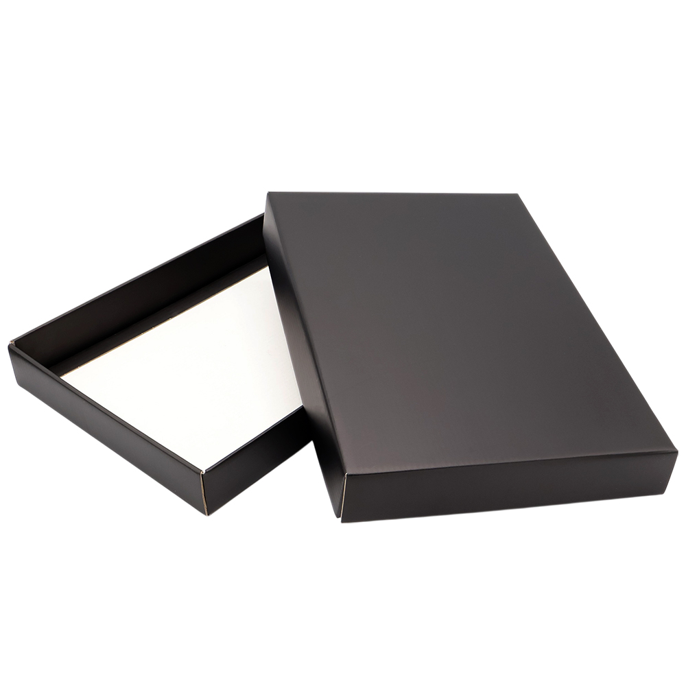 Стильная и функциональная коробка Warrant типа "Крышка+дно" в классическом черном цвете с матовой поверхностью.