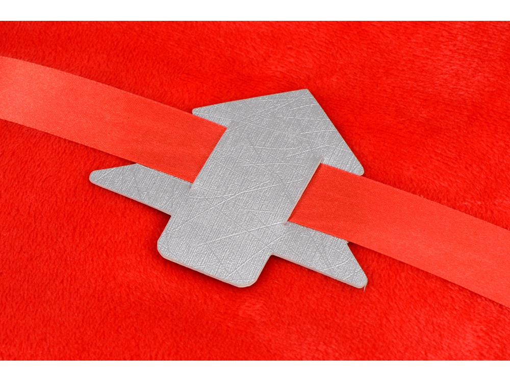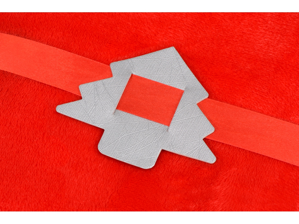 Отличная идея для персонализации новогодних подарков и пледов. С помощью специальных прорезей (2,8 см) по бокам бирка надежно крепится с ленте, которой перевязан плед, и выглядит, как новогодняя игрушка.