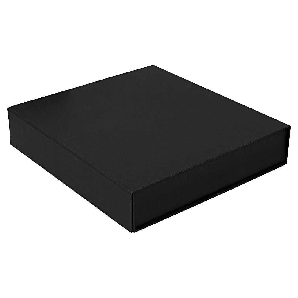 Подарочная коробка Solution Prestige с магнитным клапаном изготовлена из переплетного картона, снаружи кашированного дизайнерской бумагой фактурой имитирующей лен. Ложемент черного цвета. Материал: флокированная пена EVA.
