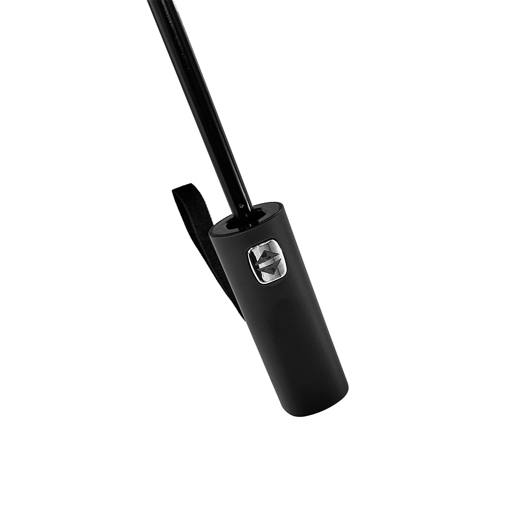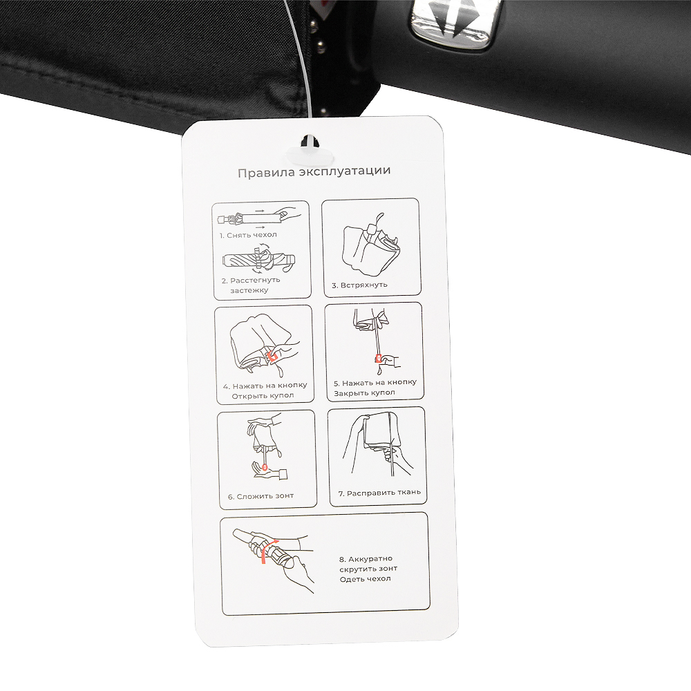 Чехол зонта выполнен из того, же материала, что и купол зонта, внутри и снаружи, имеет уплотнение и большое отверстие, что позволяет удобно упаковать зонт после использования. Чехол закрывается на магнитную кнопку серебристого цвета.