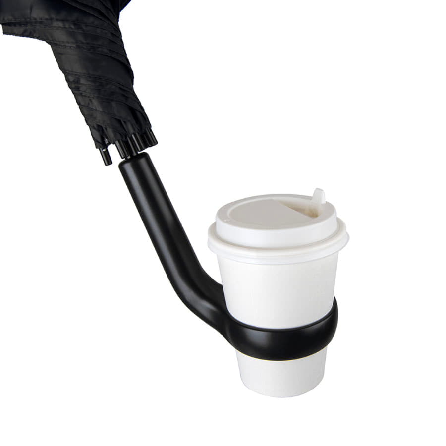 Ручка с держателем подходит для кофейного стакана или небольшой термокружки. Эта полезная особенность позволит вам в процессе использования зонта освободить руку, чтобы ответить на звонок, например. плотность нейлона 190Т диаметр отверстия в ручке — 7см